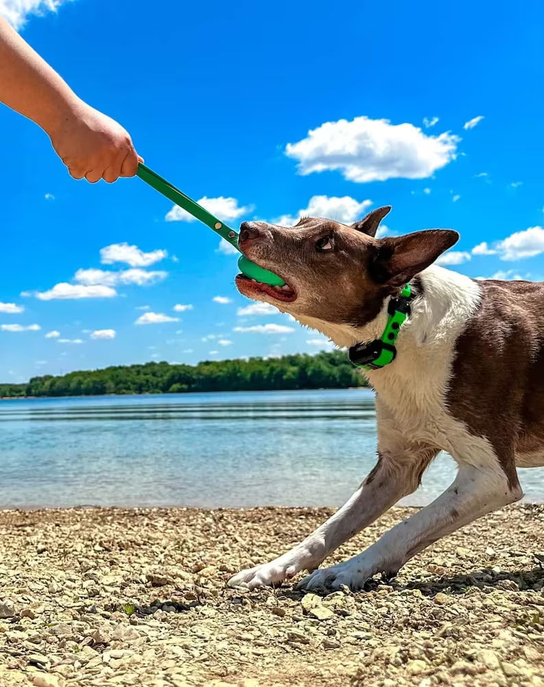 The foam balls are great for serious dogs to grip onto and sink their teeth into during tug! They also FLOAT! Over time and after much use, the foam compresses tighter - making it a great choice for durability.